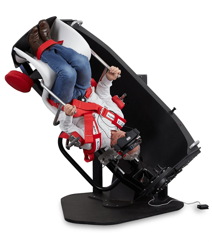 The TRV Chair diagnoses and treats patients with benign paroxysmal positional vertigo (BPPV). When the patient is strapped securely into the chair, the seat can be rotated 360 degrees along a semicircular plane to put the patient in an inverted position. The patient wears video-enabled goggles so their eye movements can be monitored. According to manufacturer Interacoustics, vertigo accounts for approximately six million clinic visits in the U.S. annually. Nearly 50% of these patients experiencing dizziness are diagnosed with BPPV. Nearly 10% of the population will have an occurrence in their lifetime and the likelihood increases by 38% every 10 years, with the highest number of cases in people between 50 and 70 years of age.